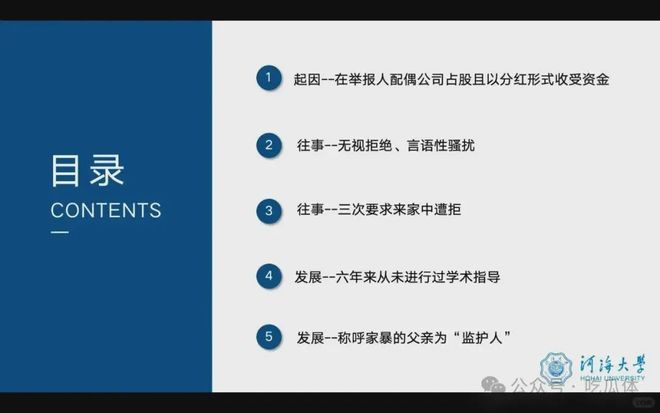 近日,在河海大学读博的李某某实名举报其博士生导师周某某与自己配偶存在利益往来,以及对她进行言语性骚扰等问题。