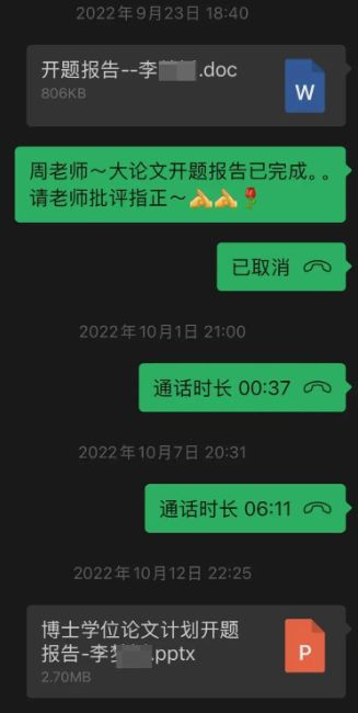 在举报材料中,李某某称,周某某在六年的博士指导中未提供有效学术支持。尤其在开题报告提交后长期不回复信息,拖延沟通。